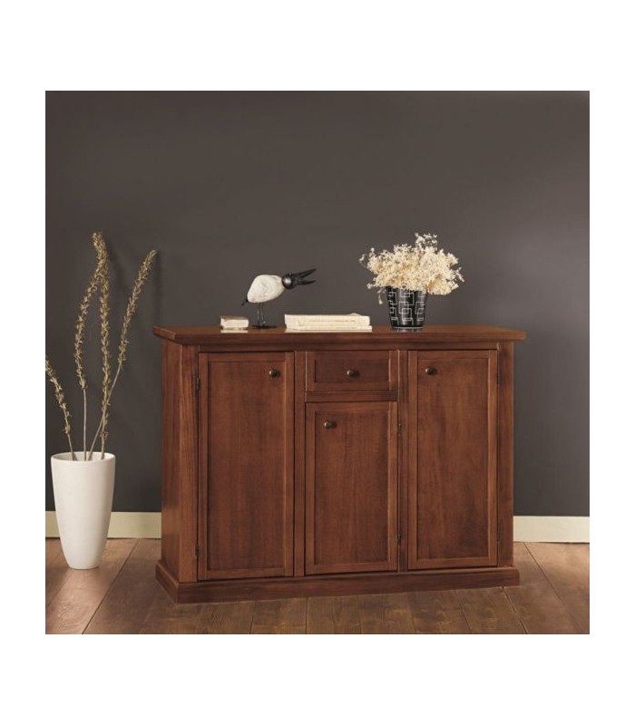 Credenza in legno, con zoccolo chiuso e 3 porte più un comodo cassettino.