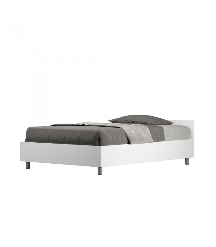 Letto una piazza e mezza 120x190 Nuamo Realizzato in legno nobilitato Disponibile in 3 finiture: Bianco Frassino, Noce, Quercia, Cemento. Versione con rete e contenitore Dimensioni ingombro: L.127 H.62 P.198 Made in Italy
