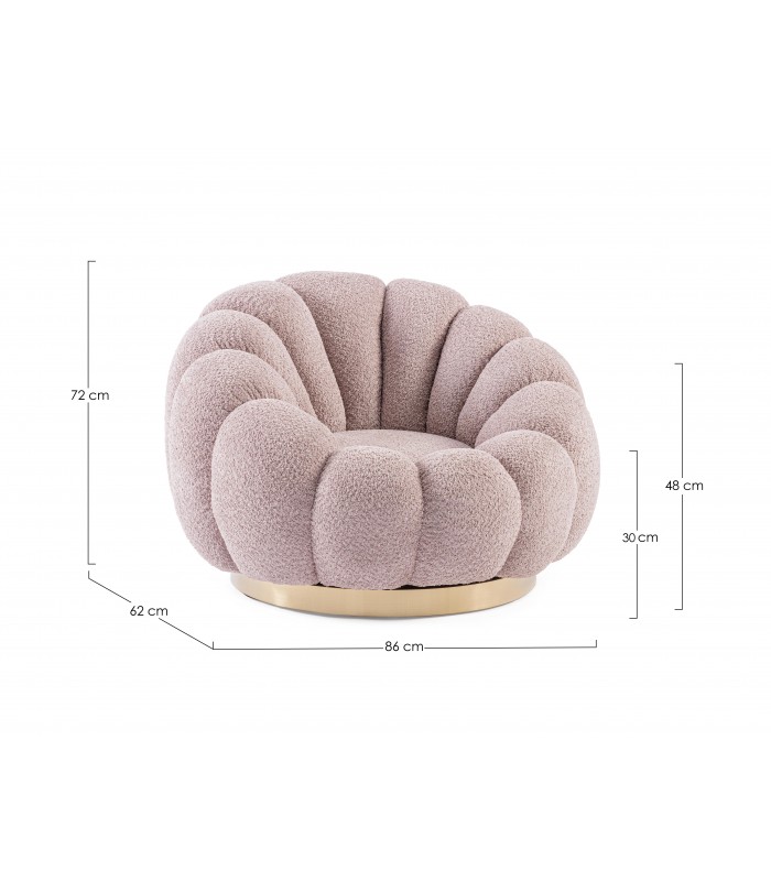 • Base: anello decorativo in acciaio verniciato oro, stabile ed elegante, che dona un tocco glamour alla poltrona.