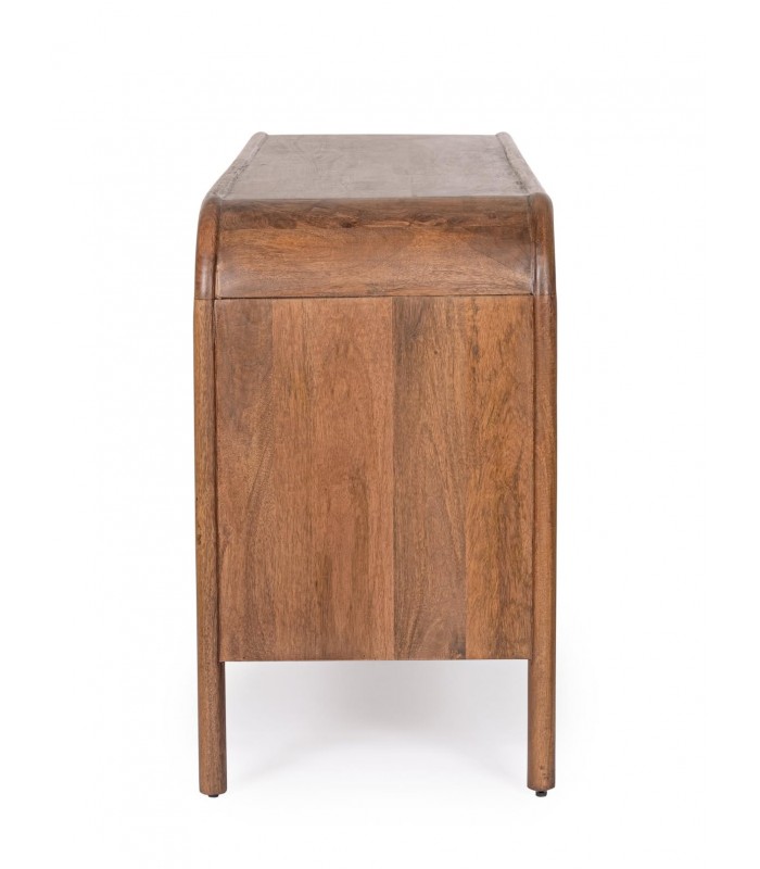 La credenza SANAT 3 ante è un mobile che fonde artigianato tradizionale e design contemporaneo. Realizzata in legno di mango con schienale in MDF, presenta frontali intarsiati e lavorati a mano, rendendo ogni pezzo unico e irripetibile. La finitura con vernice a base d’acqua valorizza le venature naturali del legno e ne protegge la superficie senza alterarne l’aspetto autentico. Le tre ante celano ampi vani con mensola, ideali per riporre stoviglie, tessili o oggetti d’uso quotidiano, mantenendo ordine con stile. Consigli di stile: Perfetta per soggiorni in stile etnico, boho o naturale, la credenza SANAT aggiunge calore e carattere anche agli interni più moderni. Si abbina a tappeti orientali, piante verdi e materiali naturali come lino, cotone e rattan. Ottima anche in un ingresso scenografico o come base per specchi e decorazioni artigianali.