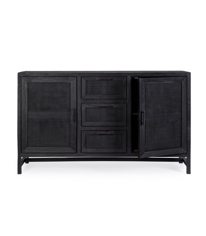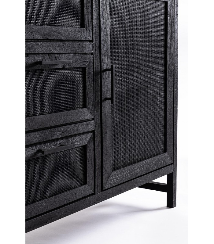La credenza WESTON 2A-3C unisce funzionalità e stile naturale grazie all’utilizzo di materiali autentici e finiture curate. La struttura è realizzata in legno di mango, solido e resistente, con una finitura a base di nitrocellulosa che esalta la tonalità calda del legno. Il retro e i fondi dei cassetti sono in MDF, mentre le ante frontali sono arricchite da inserti in rattan, che aggiungono un tocco artigianale ed esotico. Dotata di due ante laterali e tre comodi cassetti centrali, offre spazio versatile per riporre oggetti, stoviglie, documenti o biancheria. Consigli di stile: Perfetta in ambienti dal gusto boho, tropicale o scandinavo, la credenza Weston si abbina bene a colori neutri, legni chiari, tappeti in fibra naturale e complementi in ceramica o vetro opaco. Ideale per la zona giorno, l’ingresso o anche come mobile contenitore in camera da letto.