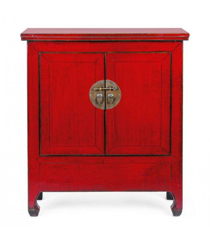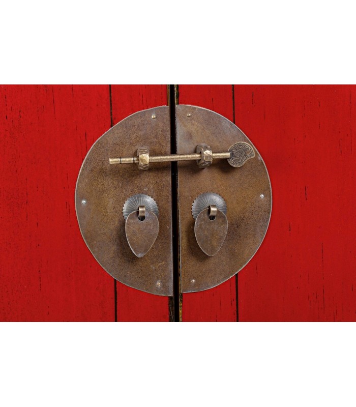 STRUTTURA IN LEGNO DI OLMO RICICLATO RICICLATO. SCHIENALE E PANNELLI INTERNI IN COMPENSATO. FINITURA LUCIDA E PATINATA A BASE D'ACQUA. MANIGLIE IN RAME.