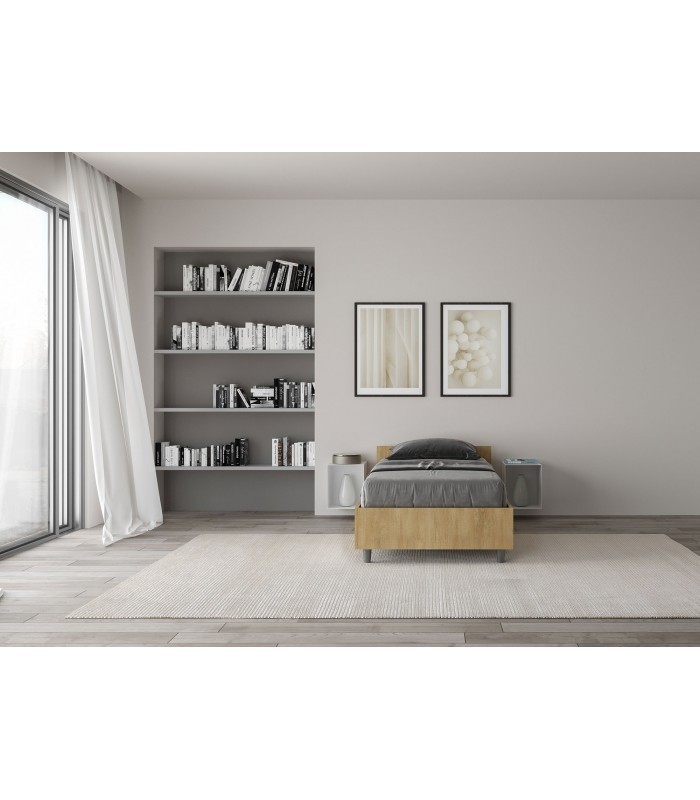 Il Letto Singolo Nuamo 80×190 è la scelta perfetta per chi ricerca uno spazio di riposo che unisca semplicità, eleganza e versatilità. Realizzato in nobilitato bianco frassino, questo letto incarnna lo stile minimal contemporaneo, trasformando la camera da letto in un'oasi di calma e armonia. Caratteristiche principali: Design Minimal ed Essenziale: Il Letto Nuamo si distingue per linee geometriche pulite e superfici semplici, prive di dettagli superflui. Questa essenzialità progettuale non è una limitazione, ma una dichiarazione di stile: meno è più, e il design parla da solo. Materiale Nobilitato di Qualità: La struttura è realizzata in pannelli di nobilitato, un materiale che combina durabilità, stabilità e un'estetica raffinata. La finitura bianco frassino conferisce alla camera un'atmosfera calda e accogliente, tipica del legno, pur mantenendo la praticità e la resistenza nel tempo. Abbinabilità Universale: Il colore bianco frassino e il design essenziale rendono il Letto Nuamo facilmente abbinabile a qualsiasi stile di arredamento: che preferiate l'interior moderno, lo scandinavian minimale, il contemporaneo sofisticato o persino il rustico contemporaneo, questo letto si integra perfettamente nel vostro ambiente. Testata e Giroletto Strutturati: Entrambi realizzati in pannelli di nobilitato con linee lineari, creano una composizione visiva equilibrata e conferiscono stabilità strutturale al letto. La testata funge da elemento focale della camera, mentre il giroletto garantisce robustezza e praticità. Senza Rete - Predisposto per Compatibilità: Il letto è fornito senza rete, ma è predisposto per accogliere una rete a norma in appoggio di dimensioni 80×190 cm con altezza di 4 cm. Questa soluzione vi consente di scegliere la rete che meglio si adatta alle vostre esigenze di comfort. Compatibilità Materasso Universale: Perfettamente compatibile con qualsiasi materasso standard da 80×190 cm, offrendovi totale libertà nella scelta del vostro riposo ideale. Made in Italy: Prodotto Ityhome interamente realizzato in Italia, garantendo qualità costruttiva, affidabilità nel tempo e un contributo all'economia locale. Proporzioni Ergonomiche: L'altezza del giroletto da terra (38 cm) assicura un accesso comodo al letto, mentre i piedini da 12 cm garantiscono stabilità e permettono una facile pulizia sotto il letto. Dimensioni totali ben pensate per non appesantire visivamente lo spazio.