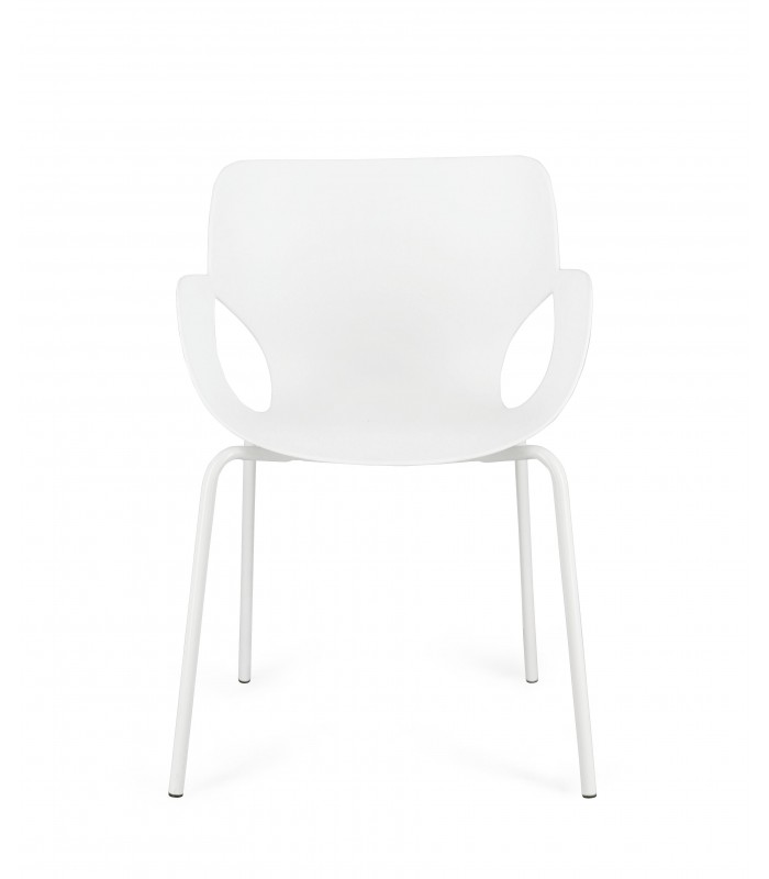 La seduta è realizzata in plastica (PP), materiale resistente e pratico per l’utilizzo quotidiano. Le gambe in acciaio verniciate a polvere epossidica assicurano stabilità e solidità strutturale.