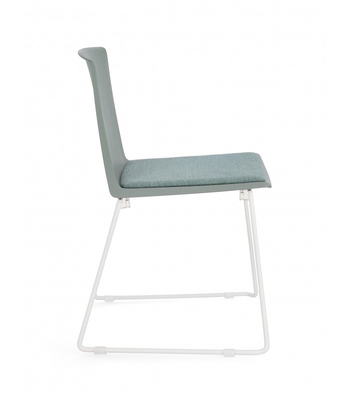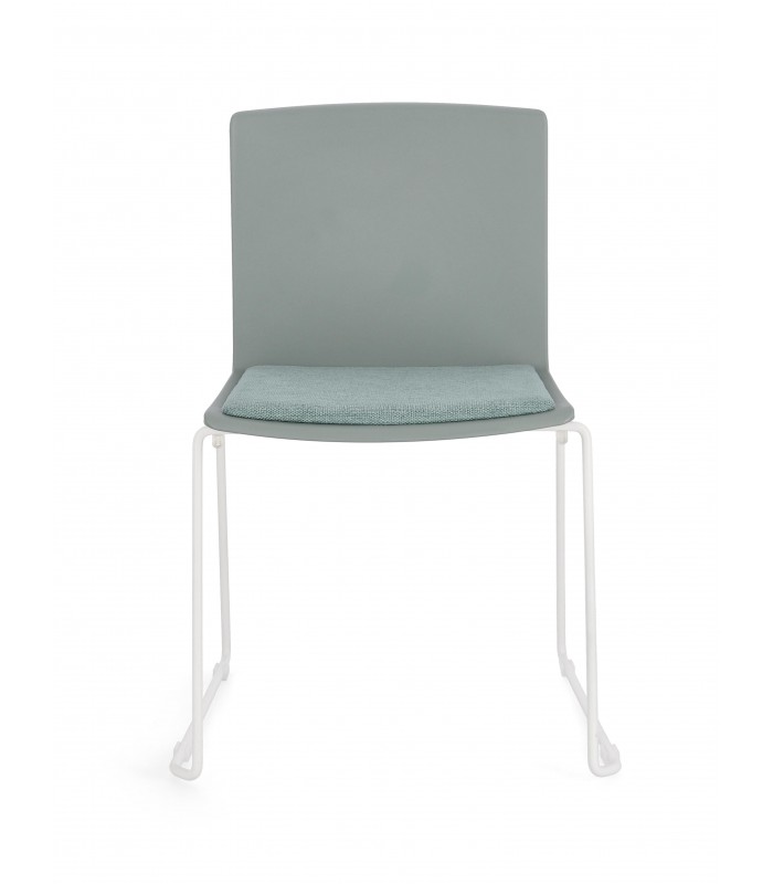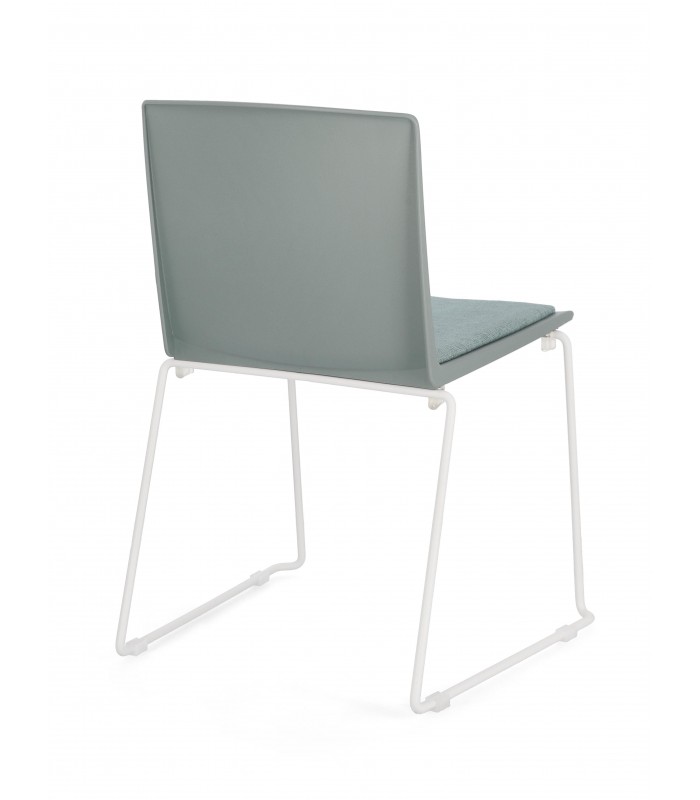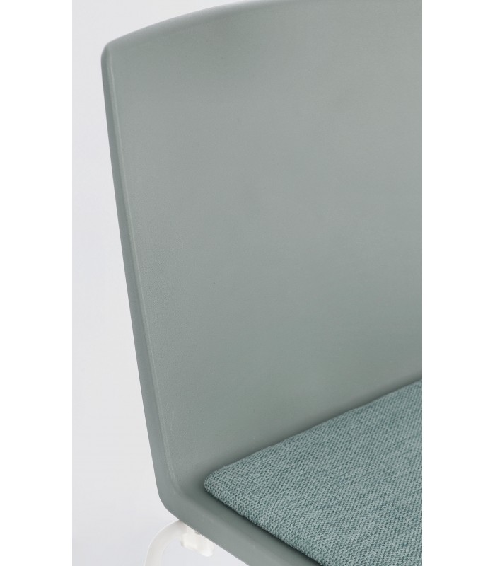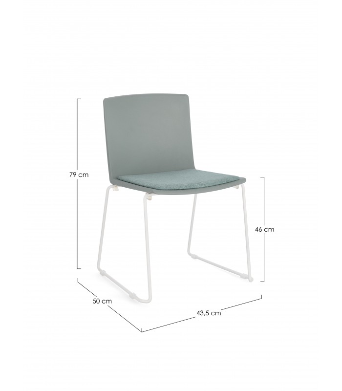 La seduta è realizzata in plastica (PP), materiale resistente e adatto all’uso quotidiano. È dotata di cuscinetto seduta in poliestere per garantire maggiore comfort. Le gambe in acciaio con finitura cromata assicurano stabilità e solidità.