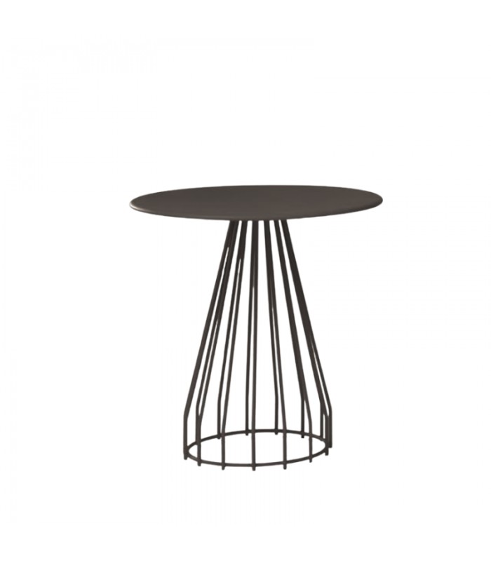Tavolo CASTORE By MILANI • Base in tondino in acciaio verniciato nero • Piano in lamiera tornito spessore 1,8 mm diametro 70 cm - Nero • Trattamento protettivo per esterni