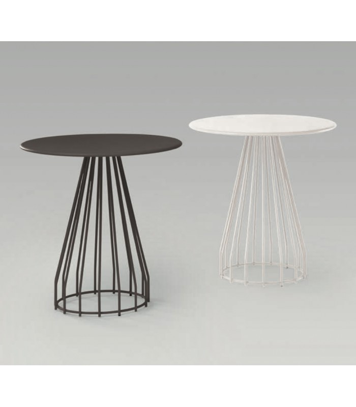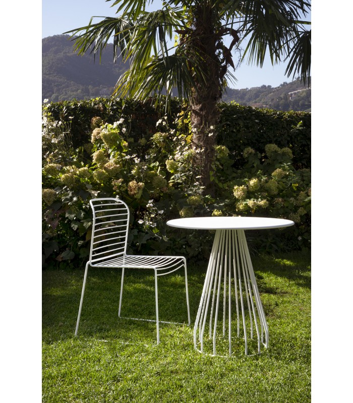 Tavolo CASTORE By MILANI • Base in tondino in acciaio verniciato nero • Piano in lamiera tornito spessore 1,8 mm diametro 70 cm - Nero • Trattamento protettivo per esterni