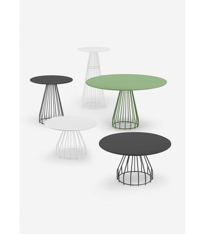 Tavolo CASTORE By MILANI • Base in tondino in acciaio verniciato nero • Piano in lamiera tornito spessore 1,8 mm diametro 70 cm - Nero • Trattamento protettivo per esterni
