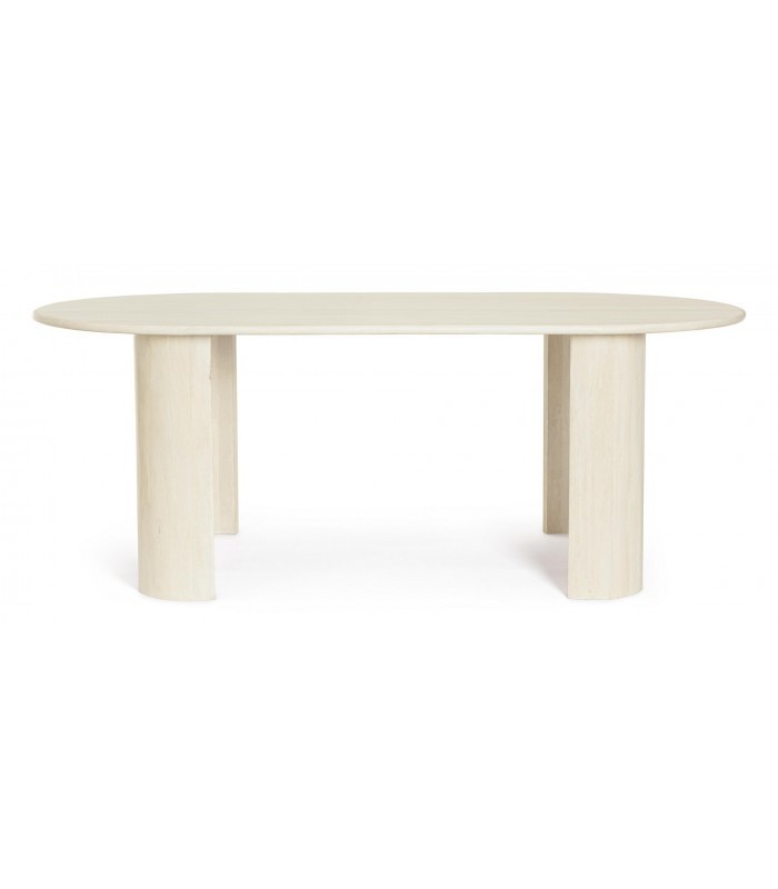 Tavolo Ovale in Legno di Mango by Bizzotto Struttura: legno di mango massiccio Finitura: nitrocellulosa Gambe: da assemblare Capacità: 8 persone Stile: contemporaneo Marchio: Bizzotto Dimensioni: 210 x 100 x 76 cm