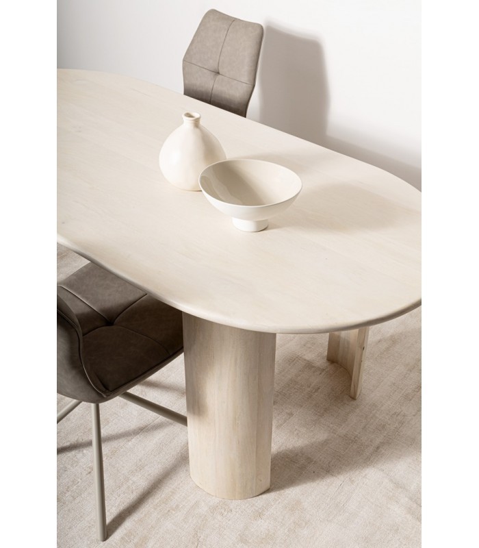 Tavolo Ovale in Legno di Mango by Bizzotto – Design Contemporaneo ideale per 8 Persone Questo elegante tavolo ovale è realizzato in pregiato legno di mango, noto per la sua robustezza e venature calde, esaltate dalla finitura a base di nitrocellulosa che ne protegge e valorizza la superficie. Perfetto per ospitare comodamente fino a 8 persone, questo tavolo fisso è ideale per creare un ambiente conviviale e raffinato. La struttura è solida e le gambe, da assemblare, conferiscono stabilità e un tocco di modernità grazie alla loro linea pulita e minimalista. Le dimensioni di 210 cm di lunghezza, 100 cm di larghezza e 76 cm di altezza lo rendono funzionale sia per sale da pranzo ampie che per spazi living open space. Consigli di abbinamento: Sedie: scegli sedie imbottite color crema o grigio chiaro per un look elegante e sobrio, oppure sedie in metallo nero per un effetto industrial chic. Complementi d’arredo: abbina il tavolo a un lampadario sospeso dal design minimal o con dettagli naturali, come legno o tessuto. Pavimenti e tessili: tappeti a pelo corto in tonalità neutre o naturali esalteranno il legno di mango. Accessori: posate e stoviglie in ceramica bianca o colori pastello per un’atmosfera fresca e contemporanea. Ambiente: ideale per una sala da pranzo moderna o un open space living dallo stile caldo e accogliente.
