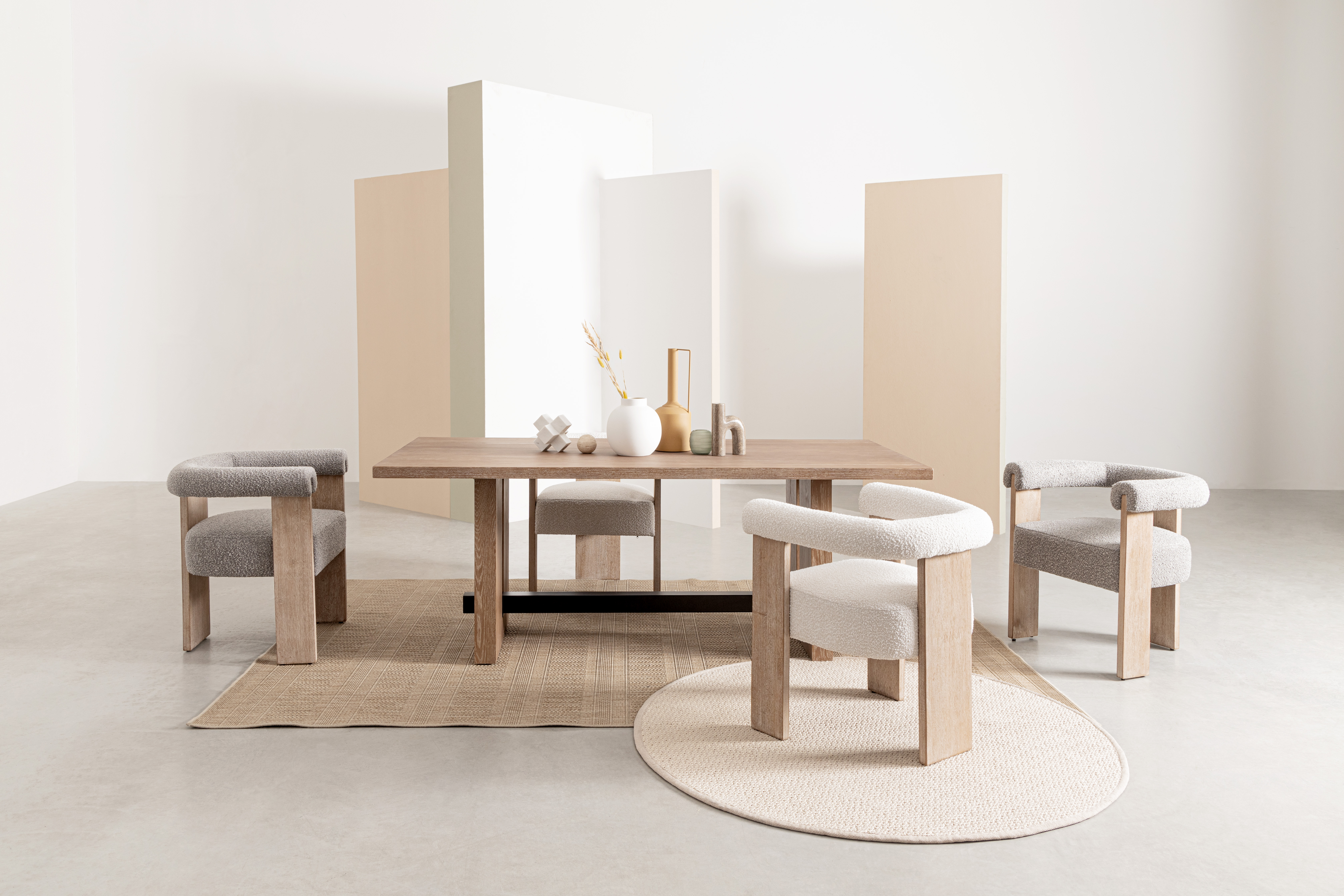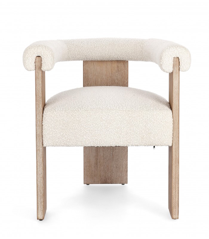 Sedia con braccioli AGAPE - Legno Naturale e Bouclé Beige