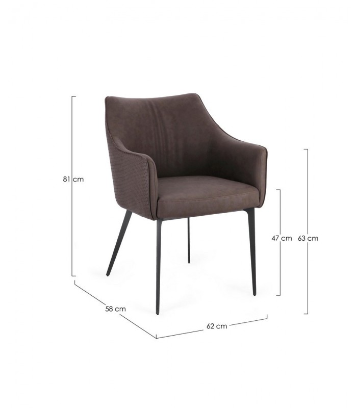 Larghezza: 62 cm – Profondità: 58 cm – Altezza: 81 cm – Altezza seduta: 47 cm – Altezza braccioli: 63 cm