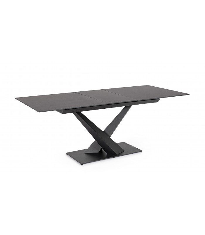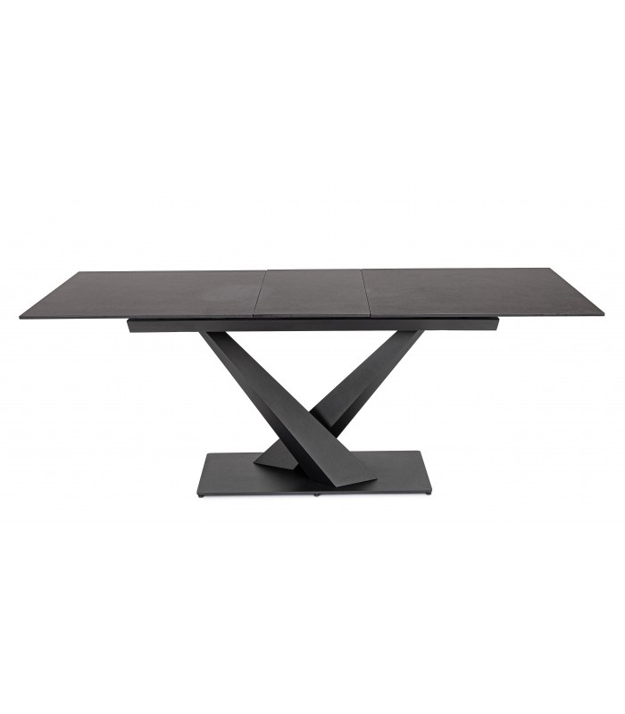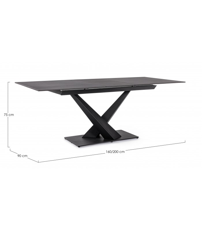 Il piano in gres è altamente resistente a graffi, calore e macchie, perfetto per l’uso quotidiano. Le gambe incrociate aggiungono un tocco di design e rendono il tavolo adatto a cucine e soggiorni moderni.