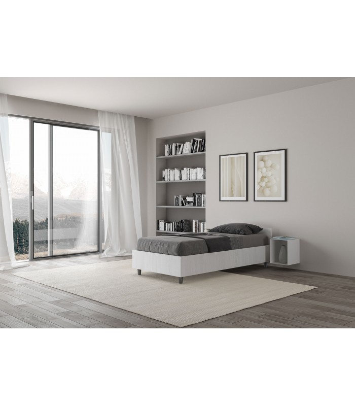 Il Letto Singolo Nuamo 80×200 è la scelta perfetta per chi ricerca uno spazio di riposo che unisca semplicità, eleganza e versatilità. Realizzato in legno nobilitato con diverse opzioni di finitura, questo letto incarna lo stile minimal contemporaneo, trasformando la camera da letto in un'oasi di calma e armonia. Caratteristiche principali: Design Minimal ed Essenziale: Il Letto Nuamo si distingue per linee geometriche pulite e superfici semplici, prive di dettagli superflui. Questa essenzialità progettuale non è una limitazione, ma una dichiarazione di stile: meno è più, e il design parla da solo. Materiale Nobilitato di Qualità: La struttura è realizzata in pannelli di nobilitato, un materiale che combina durabilità, stabilità e un'estetica raffinata. Le diverse finiture disponibili conferiscono alla camera un'atmosfera versatile, dal calore del legno naturale alla sofisticatezza contemporanea. Abbinabilità Universale: Il design essenziale e le molteplici opzioni cromatiche rendono il Letto Nuamo facilmente abbinabile a qualsiasi stile di arredamento: che preferiate il moderno, lo scandinavian minimale, il contemporaneo sofisticato o persino il rustico, questo letto si integra perfettamente nel vostro ambiente. Lunghezza Extra: Con 200 cm di lunghezza, questo letto offre uno spazio di riposo ancora più confortevole rispetto alle soluzioni standard, perfetto per chi desidera maggiore libertà di movimento durante il riposo. Opzioni di Personalizzazione: Senza Rete: Predisposto per accogliere una rete a norma in appoggio di dimensioni 80×200 cm con altezza di 4 cm Con Rete: Fornito con rete integrata per una soluzione completa e pronta all'uso Contenitore: Disponibile con cassoni di contenimento integrati nel giroletto, perfetta per massimizzare lo spazio contenitivo in camere di dimensioni ridotte Compatibilità Materasso Universale: Perfettamente compatibile con qualsiasi materasso standard da 80×200 cm, offrendovi totale libertà nella scelta del vostro riposo ideale (materasso non incluso). Proporzioni Ergonomiche: L'altezza del giroletto da terra (38 cm) assicura un accesso comodo al letto, mentre i piedini da 12 cm garantiscono stabilità e permettono una facile pulizia sotto il letto. FINITURE DISPONIBILI Bianco Frassino Finitura luminosa e neutra che crea leggerezza visiva nella camera. Ideale per ambienti scandinavi, minimal e contemporanei. Perfetto per stanze piccole dove si desidera massimizzare la sensazione di spazio. Noce Finitura calda e ricca che conferisce eleganza e sofisticatezza. Ideale per ambienti classici contemporanei, crea un'atmosfera accogliente e raffinata. Perfetto per camere che desiderano un'estetica più robusta e classica. Quercia Finitura dal carattere naturale che riproduce il legno autentico. Ideale per stili rustico-contemporanei e scandinavi autentici. Crea un'atmosfera naturale e organica senza perdere la linea essenziale del design. Cemento Finitura grigia sofisticata che rappresenta lo stile industriale contemporaneo. Ideale per ambienti urban, loft e design moderno puro. Perfetto per chi ricerca un'estetica fredda e architettonica.