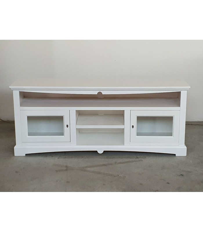 Ti proponiamo questo semplice porta TV in legno massello, con 2 ante in vetro e 3 scomparti portaoggetti.