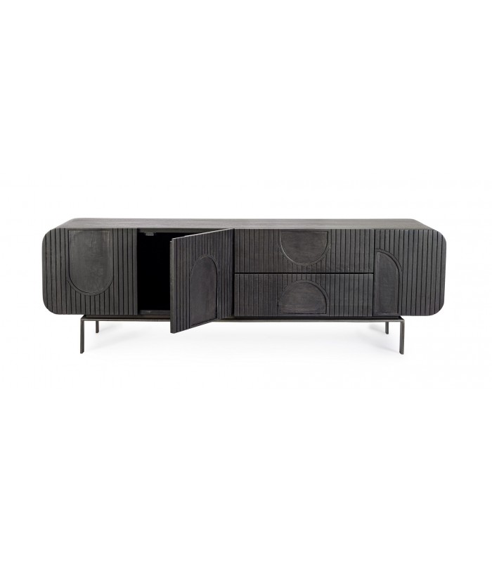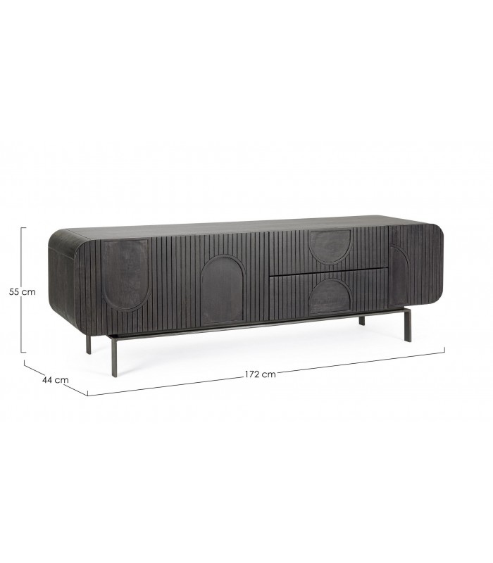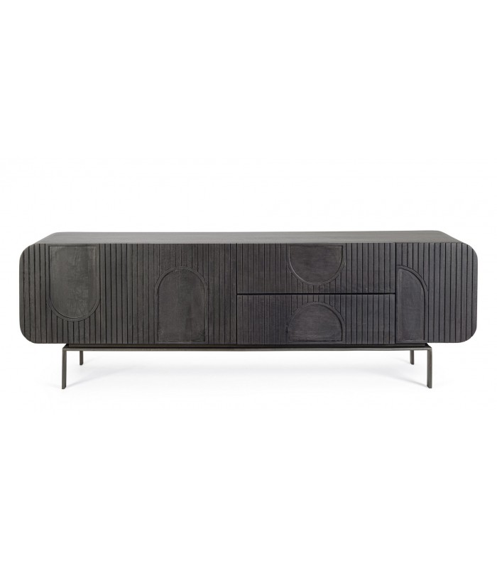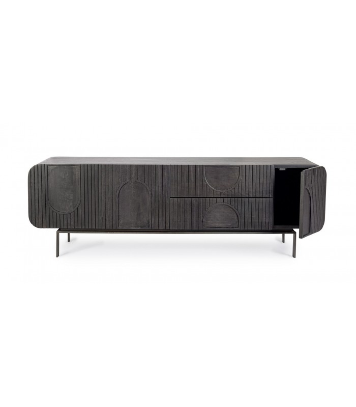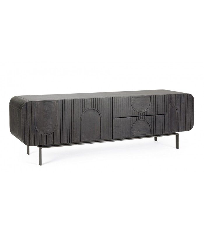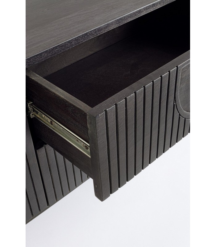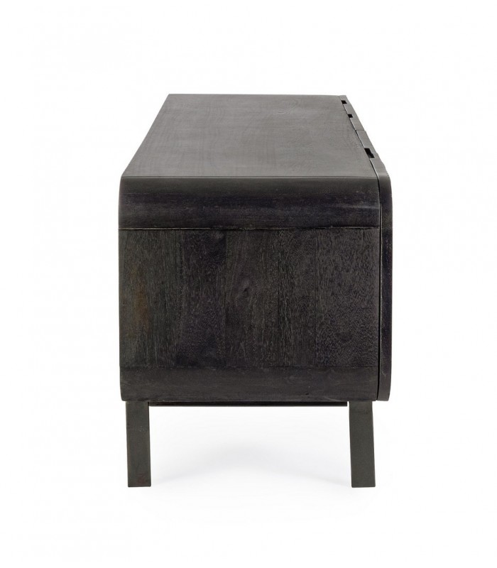 Il mobile porta Tv in legno di mango di colore nero è la soluzione perfetta per arredare il soggiorno con eleganza naturale e massima funzionalità.