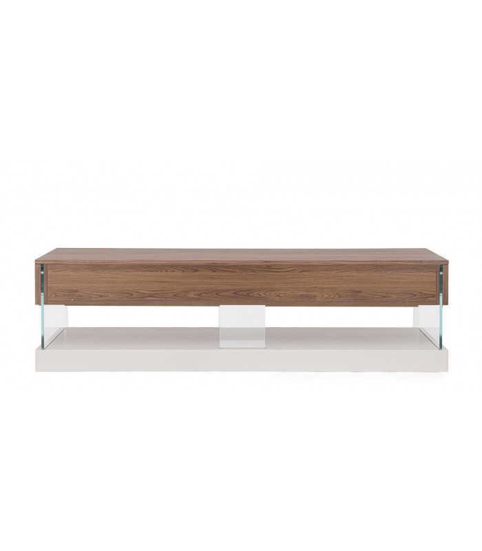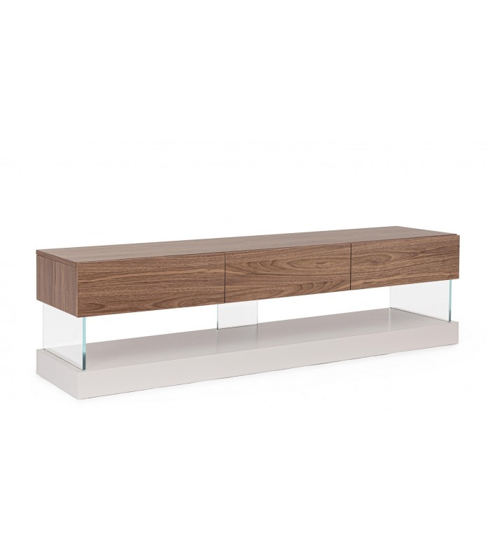 Questo porta TV in noce per soggiorno moderno si integra perfettamente in ambienti contemporanei, nordici o minimal, diventando un elemento centrale della zona living.