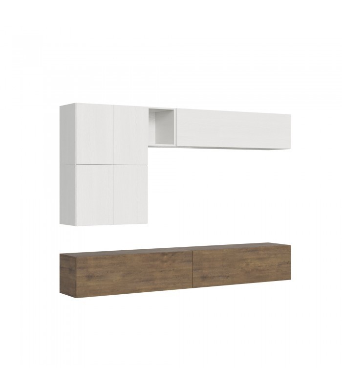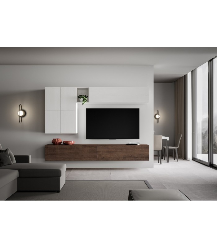 Finiture Disponibili Ogni elemento della composizione può essere scelto nelle seguenti eleganti finiture: Bianco Frassino: tonalità chiara e luminosa, perfetta per ambienti contemporanei e minimalisti Noce: finitura calda e raffinata che dona carattere ed eleganza agli spazi Quercia Natura: essenza naturale che porta il calore del legno nella zona living Puoi combinare liberamente i colori dei vari componenti per creare la tua composizione personalizzata, abbinando finiture diverse per un risultato unico e su misura.