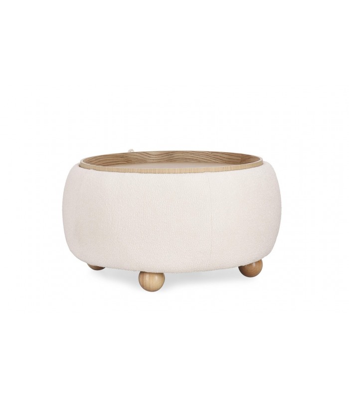 Il vassoio superiore rimovibile consente di trasformare facilmente il pouf in un pratico piano d’appoggio per bevande, libri o oggetti decorativi. Il vano contenitore interno è perfetto per riporre plaid, riviste e accessori, mantenendo l’ambiente ordinato.