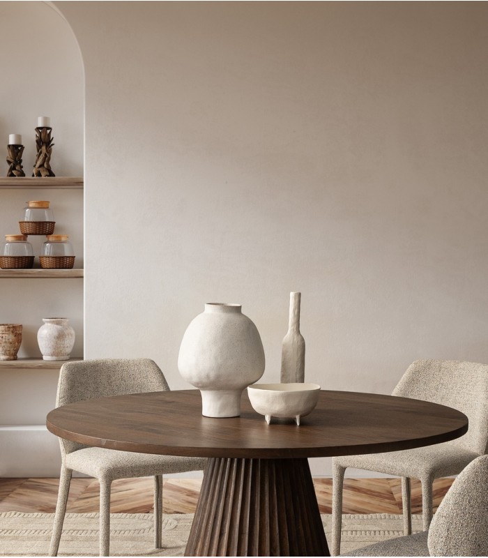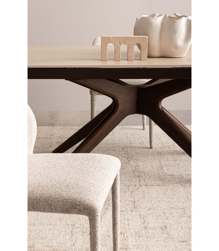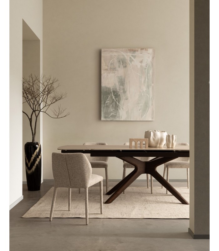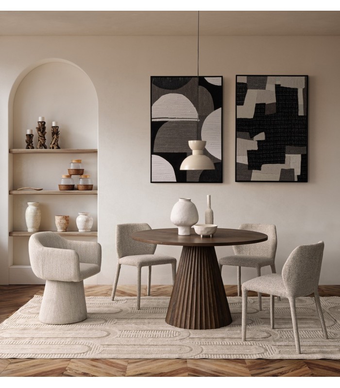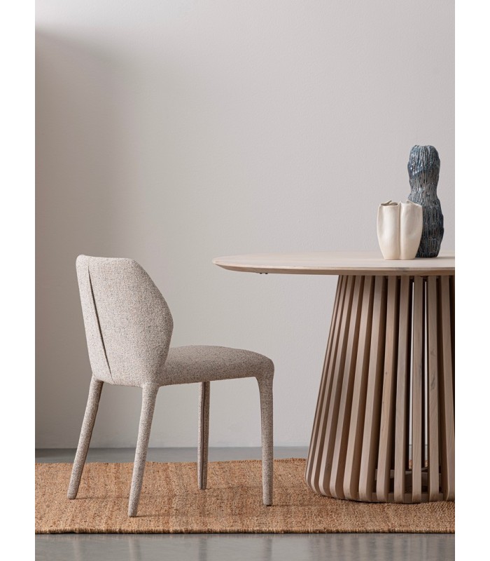 La seduta è imbottita con schiuma poliuretanica ad alta densità per un comfort ottimale. Il rivestimento in tessuto morbido e raffinato, dona un tocco accogliente agli ambienti. Ideale per soggiorni, sale da pranzo o spazi contract. Non sfoderabile.