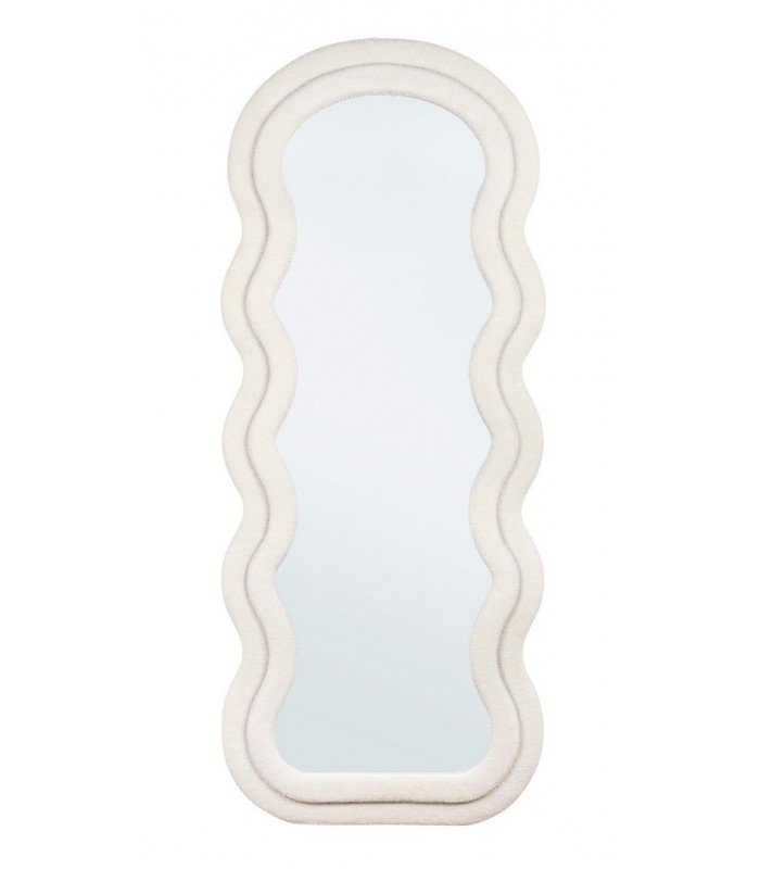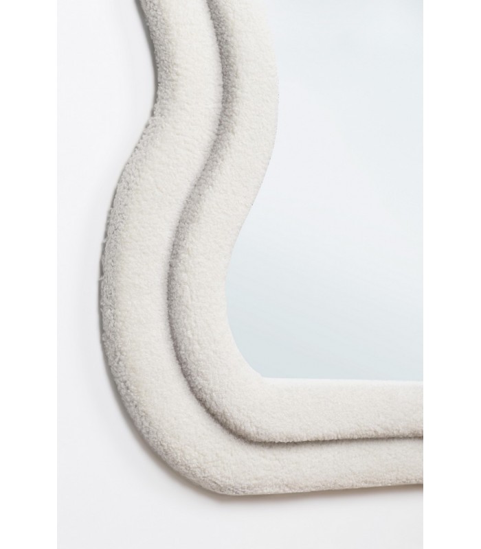 La cornice rivestita in poliestere effetto Teddy dona morbidezza visiva e materica, creando un piacevole contrasto con la superficie liscia e luminosa del vetro.